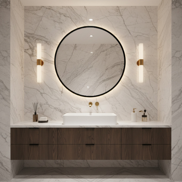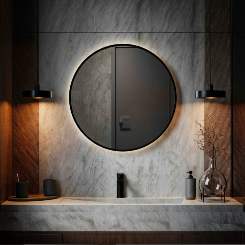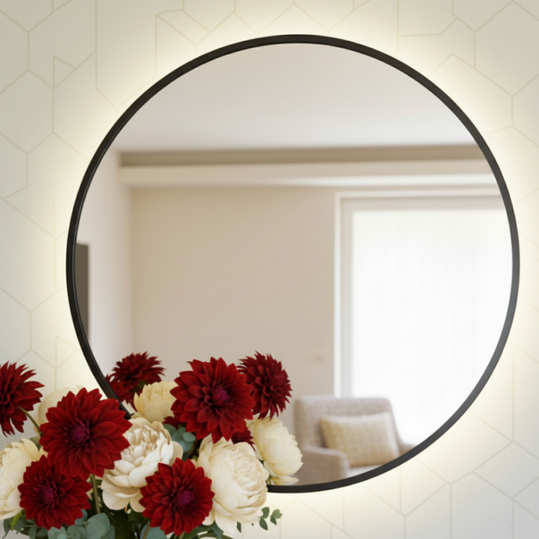 Okrągłe Lustro LED z wyborem podświetlenia i nowoczesnymi funkcjami.