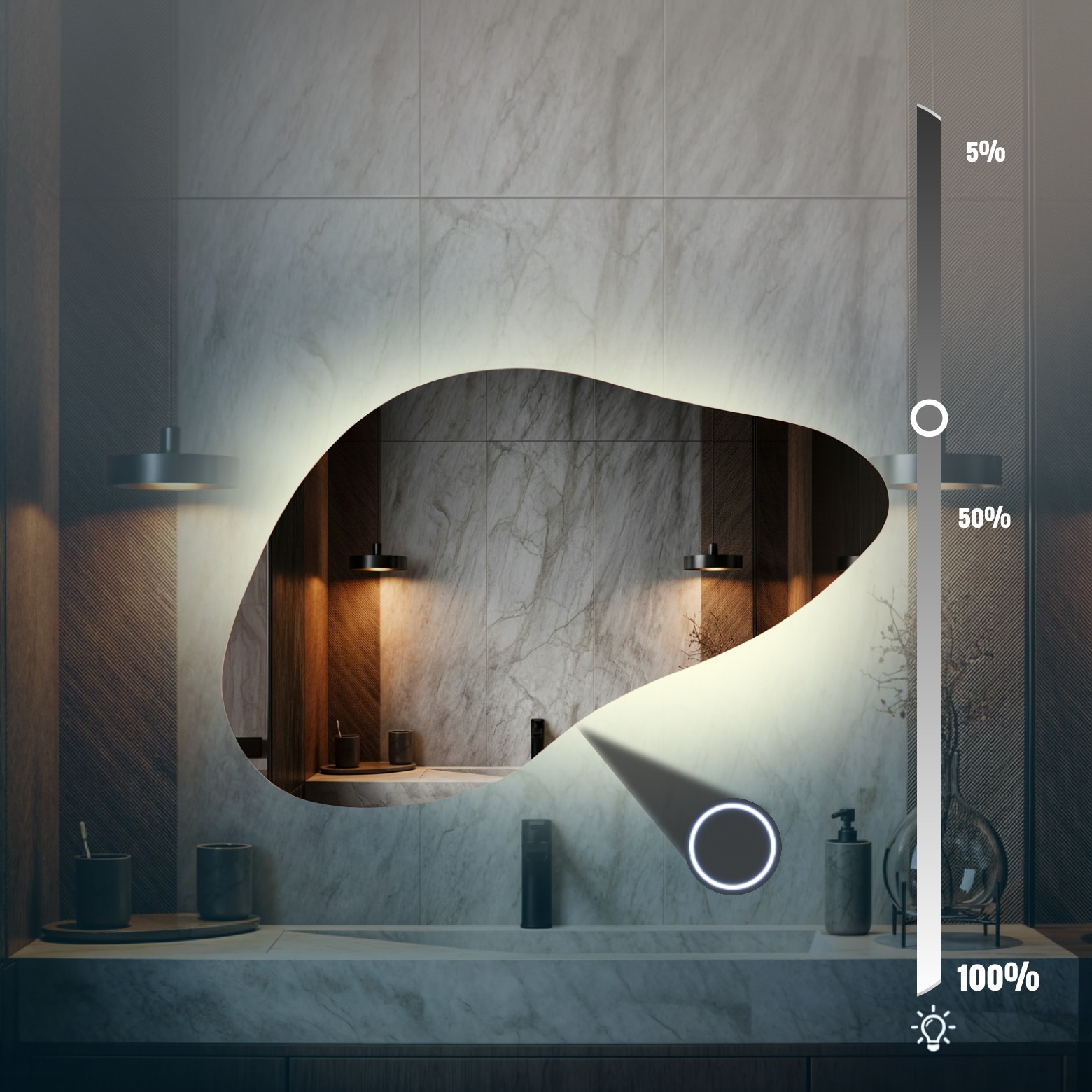 Nieregularne Lustro LED z wyborem podświetlenia i nowoczesnymi funkcjami.