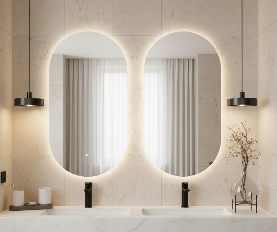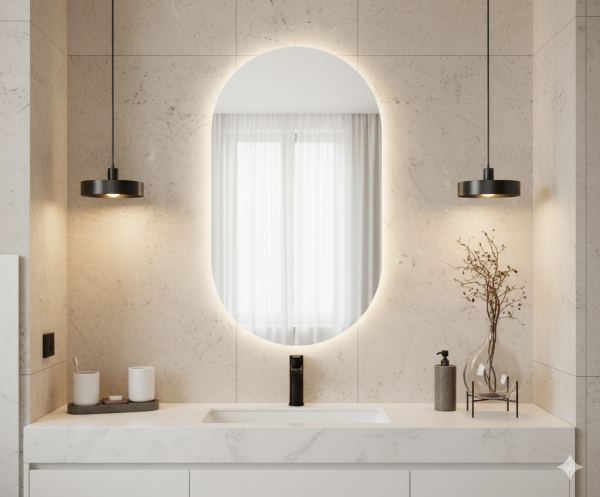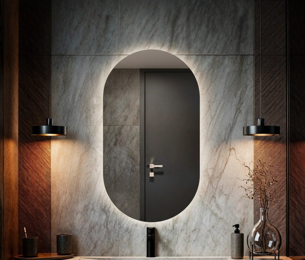 Owalne Lustro LED z wyborem podświetlenia i nowoczesnymi funkcjami.
