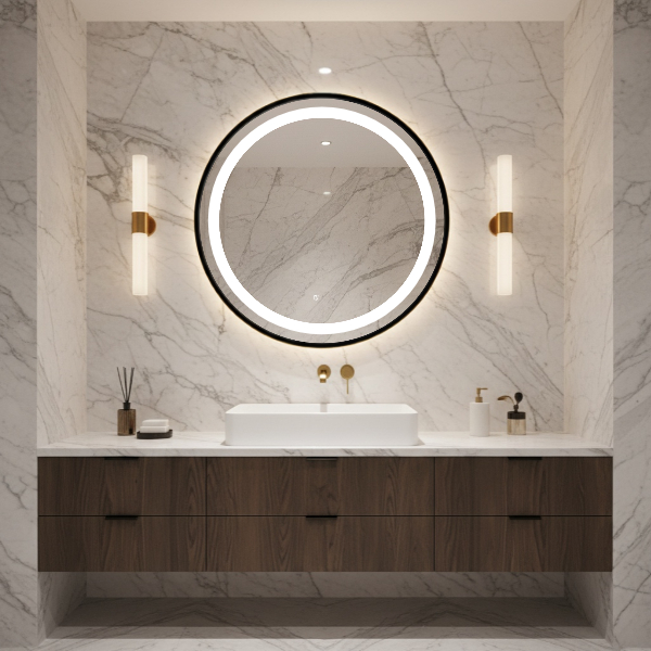 Okrągłe Lustro LED z wyborem podświetlenia i nowoczesnymi funkcjami.