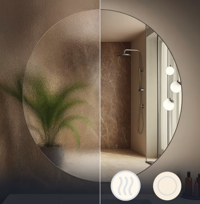 • Mata zapobiegająca parowaniu (opcja do wyboru): Koniec z zamglonym lustrem po gorącej kąpieli. Opcja maty przeciw parowaniu sprawia, że lustro jest zawsze czyste i gotowe do użycia.