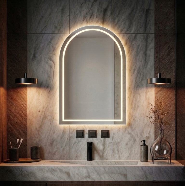 Półowalne lustro LED to wyjątkowe połączenie nowoczesnego designu oraz praktycznych rozwiązań, które znacząco podnoszą komfort codziennego użytkowania. Dzięki swojej unikalnej, zaokrąglonej formie lustro prezentuje się niezwykle elegancko, a jednocześnie wprowadza do wnętrza lekkość i harmonię.