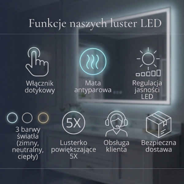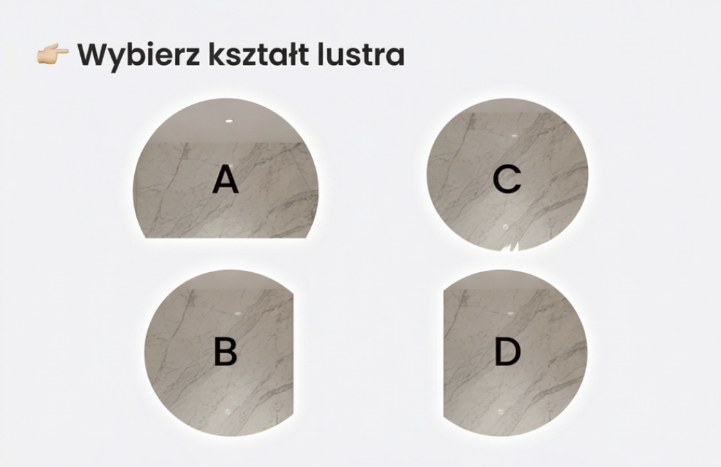 Twoje wnętrze zasługuje na wyjątkowe rozwiązania – dlatego dajemy Ci możliwość pełnej personalizacji lustra LED. Dobierz wszystkie elementy według własnych potrzeb i gustu: