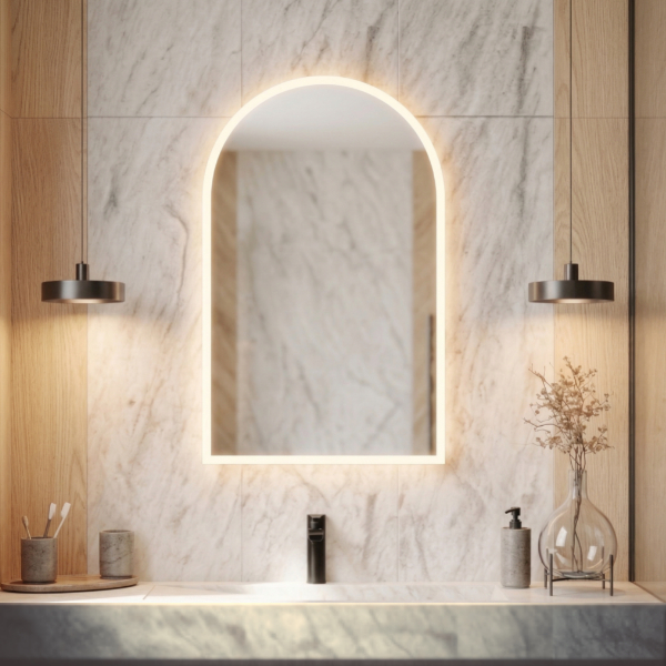 Półowalne lustro LED to wyjątkowe połączenie nowoczesnego designu oraz praktycznych rozwiązań, które znacząco podnoszą komfort codziennego użytkowania. Dzięki swojej unikalnej, zaokrąglonej formie lustro prezentuje się niezwykle elegancko, a jednocześnie wprowadza do wnętrza lekkość i harmonię.
